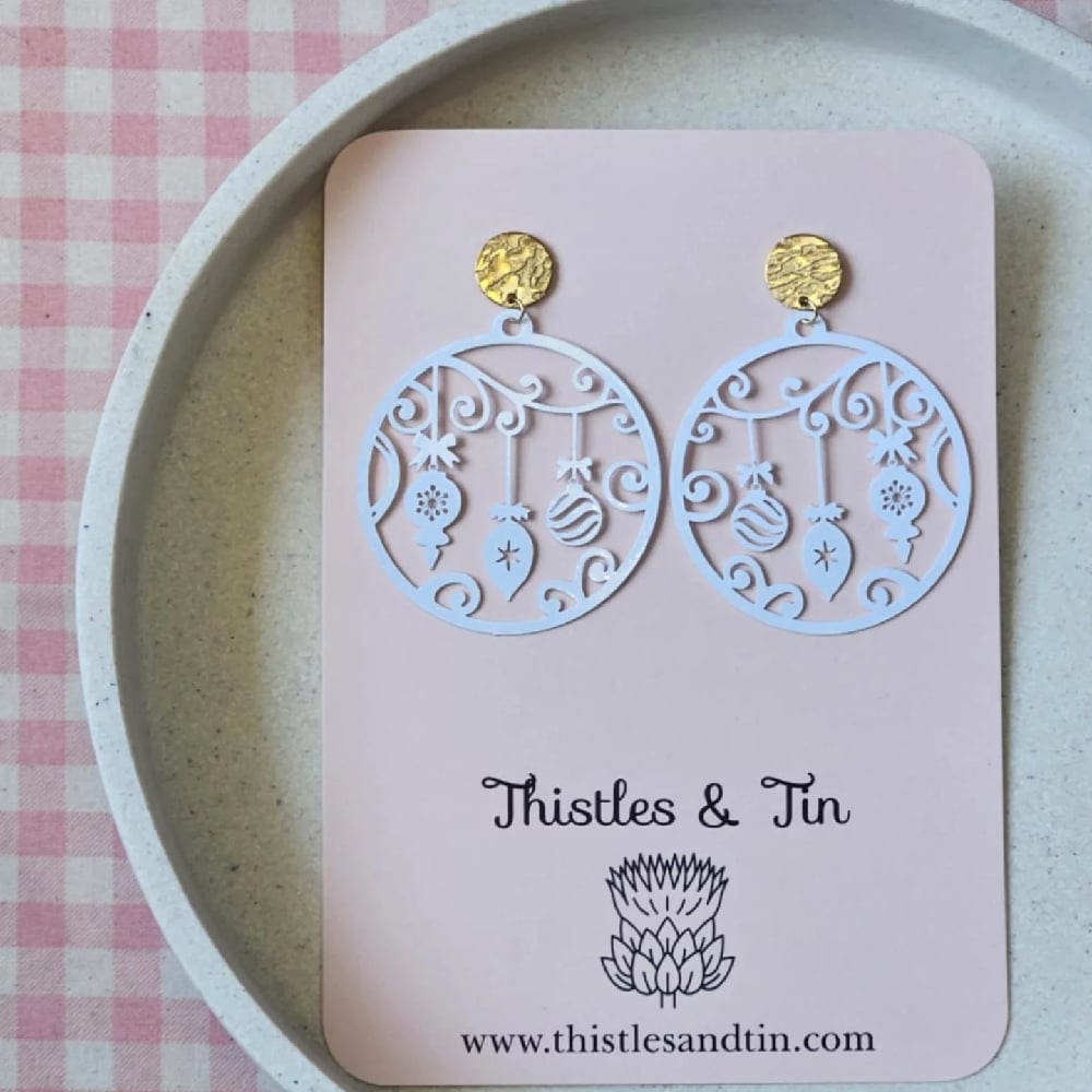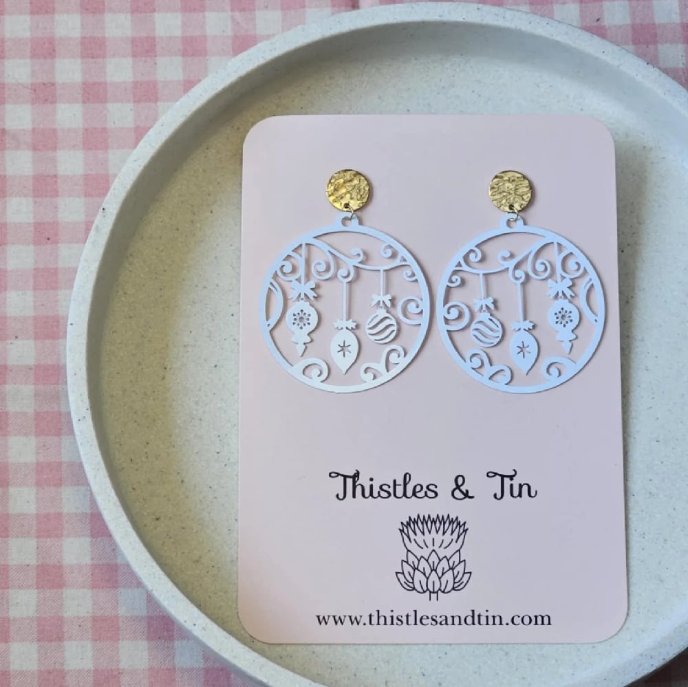 Add some festivity to your day with these Christmas Bauble Dangles. With a large laser cut design you will be sure to spread the Christmas spirit.