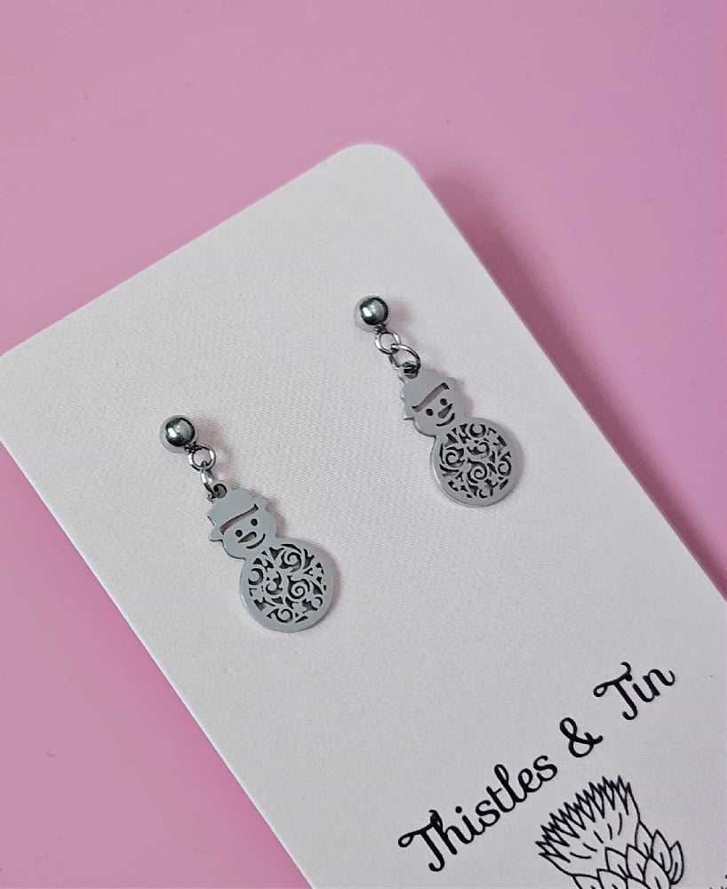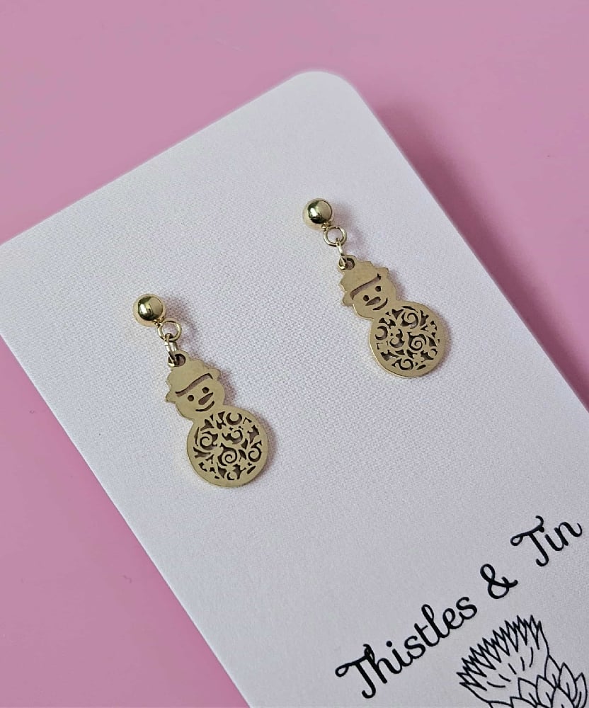 Our Filigree Snowman Dangles bring elegance and charm to any look, crafted with intricate filigree detailing in both gold and silver finishes.