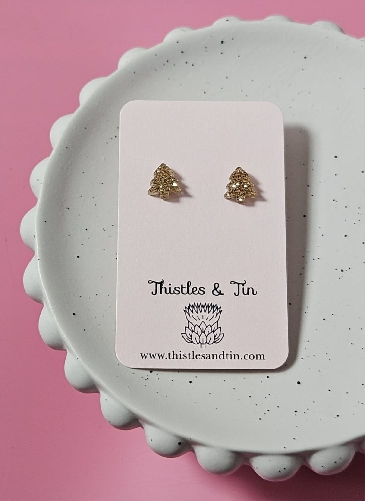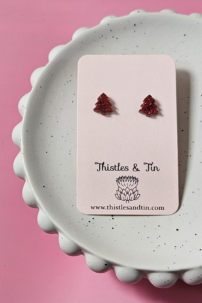 Add a touch of whimsy to your outfit with our Teeny Tiny Christmas Tree Studs.